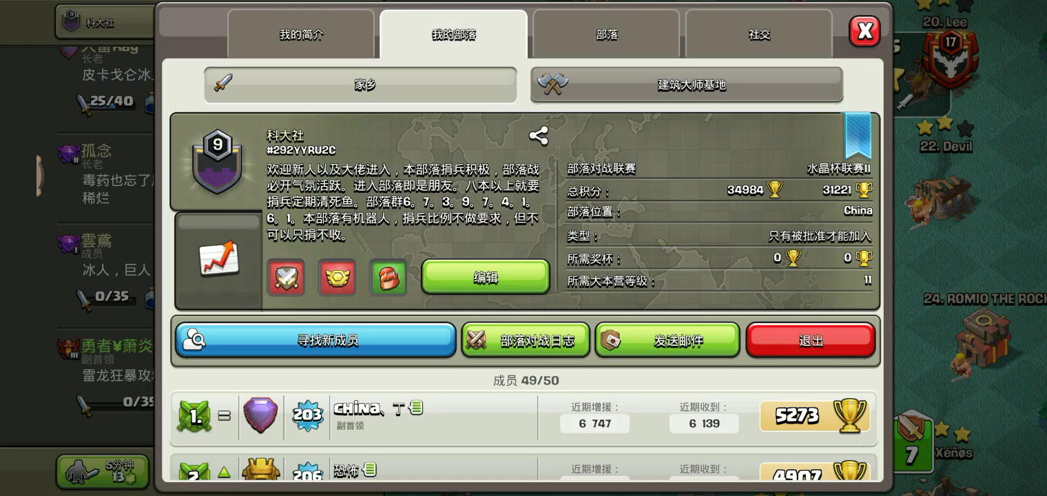 我的部落联赛。