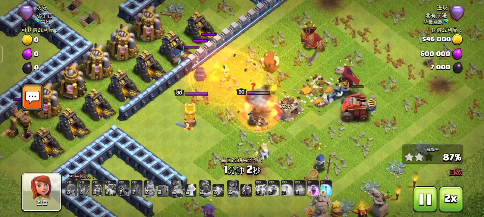 这个打法有一点小瑕疵,在清完边后就可以丢跳跃法术,紧接着就把所有的重型部队放出去