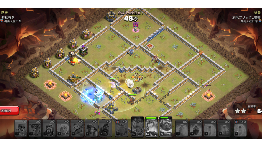 失误了几次,如果没失误的话,完全可以不需要援军拿下三星,这种打法尽量做到天女完成任务后就能脱离战场溜边输出,这时候天女基本上死不了,对于分散阵型不好操作,毕竟进攻时女王很容易拆墙,而不是离开战场溜边