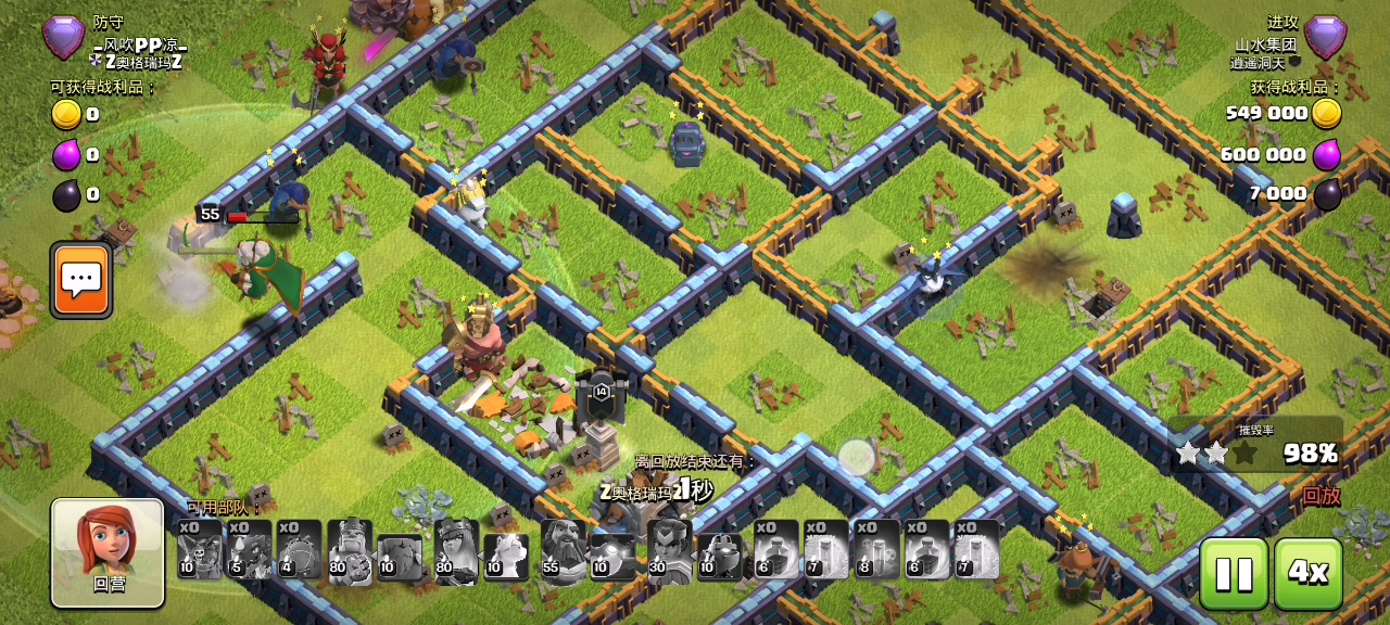 考虑到时间问题,不然爆本工作应该留到最后的,这样不至于把援兵拉出来了,自己的援兵也没带对,毕竟这是我玩矿猪的援兵,那几个猪就和那些牛马一样出来搞笑的。而且雷龙加狂暴应该选择清内一片防御建筑的,有一个雷龙狂暴还没给到,双王遇到援兵直接暴毙了,基本没派上用场,就这样还有4条小龙,一个狂暴省下来了,口嗨之前屏蔽人多是一件美事啊,这样就不用担心被打脸了呢😅