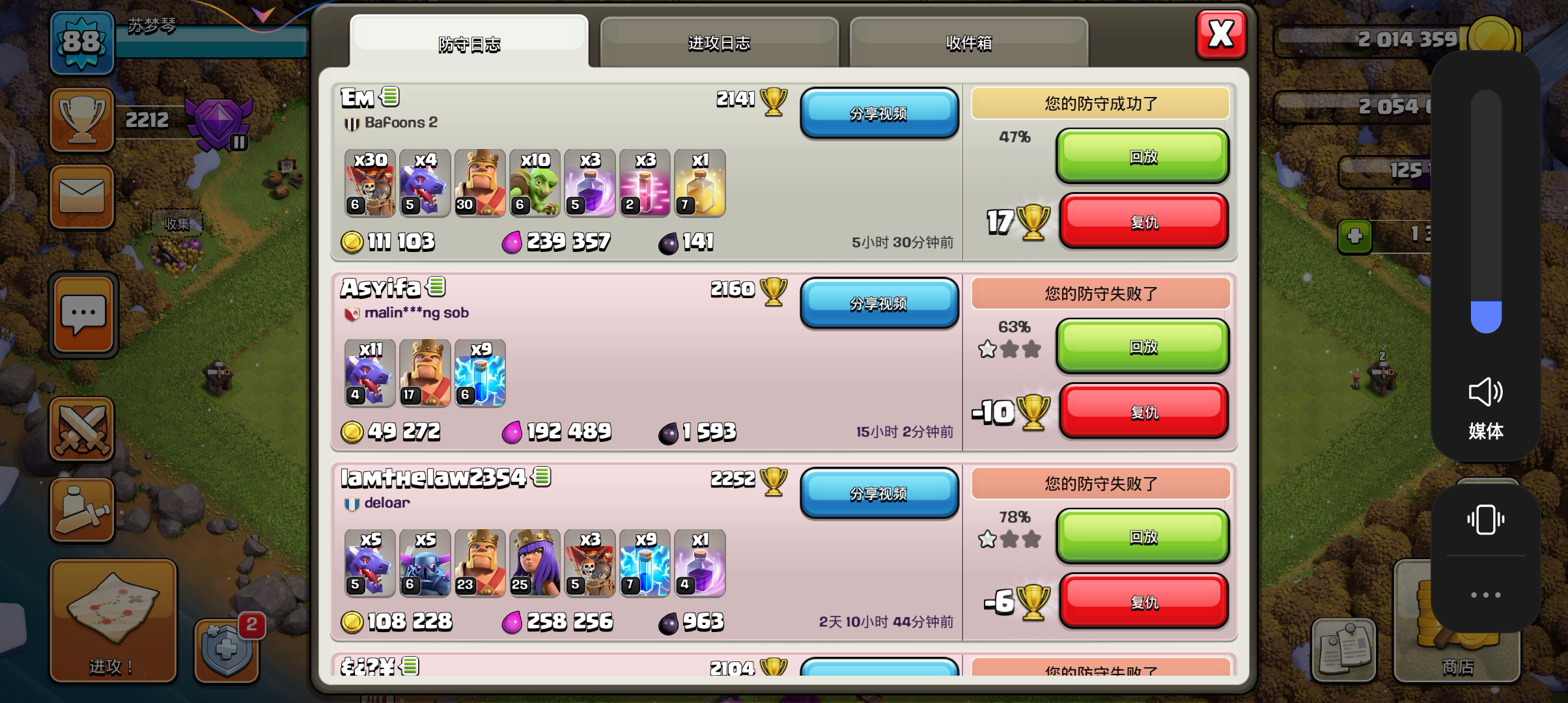 15年开始玩,玩了两年。 直到昨日回归!!我的兄弟姐妹们,我在部落就在,我们一起打出来的部落不会丢,我等你们复苏😂