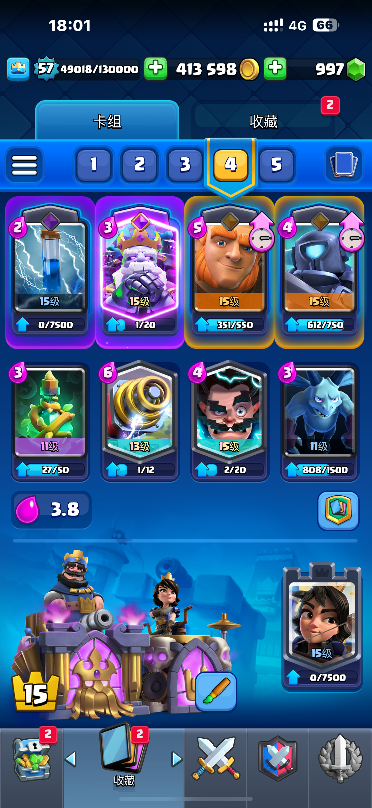 ★部落篇:好像是3级可以加部落,我也不大记得了,当时加了个外国部落,公告用英文写着周捐多少给什么职位之类的(里面好多高等级的一看就是ios的)。萌新加进去不舍得捐卡后来不到一天就被踢了(可能刚好遇到了周末清人的时候),心里在滴泪丫。。。后来辗转反侧进了个中国部落,便稳定了下来。默默膜拜部落排名在前面的大佬。偷看他们卡组,好多我都没有,于是开始了升阶之旅。