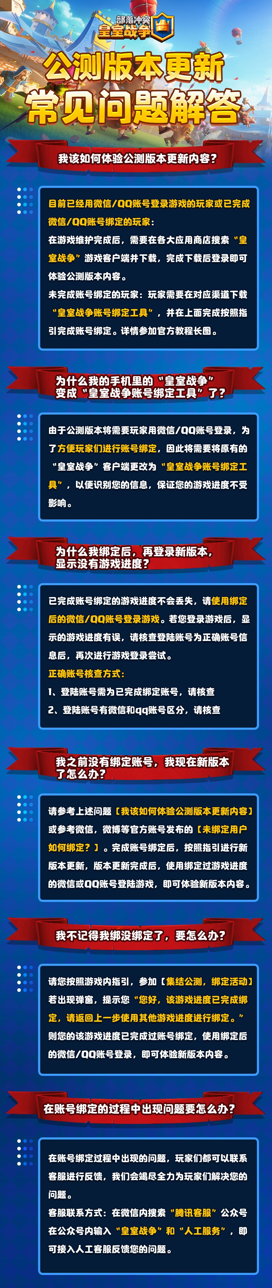 亲爱的挑战者们: 《部落冲突:皇室战争》公测版本现已火热上线,公测活动火爆开启中。您需要前往各大应用商店或游戏社区重新下载《部落冲突:皇室战争》游戏客户端进行游玩。 关注皇室战争官方账号,了解更多公测福利活动! 详细的版本更新信息见《版本内容更新详情》《优化更新详情》。#皇室战争