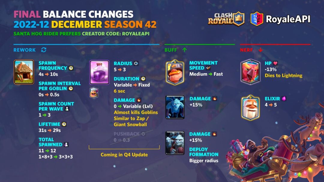 【】 请移步至,此处不是最终实装的平衡性调整。 这些并不是最终调整,平衡性调整团队会根据你们的反馈进行适当修改,并在新赛季开始时公布。 延续之前的传统,先放出平衡性调整的初稿。从现在直到9月25日星期天,大家可以在评论区留言进行反馈。 Royaleapi作者会阅读原文评论区和社交媒体下全部的评论,确定玩家间是否有某些一致的观点,并将大家的反馈提交给平衡性调整团队。Supercell会在10月前作出
