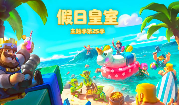 主题季第25季:假日皇室透过碧海蓝天炎炎夏日悄然来临冒着泡泡的橘子汽水甜甜的西瓜和冰激凌三五成群的皇室小伙伴们在海边无忧无虑地嬉笑打闹夕阳洒在海面上波光盈盈好似一群发光的小精灵在水中翩翩起舞微微的海风亲吻着你的脸颊调皮的浪花轻轻拍打着海岸主题季第25季欢乐开启!让皇室和假日一起治愈你的整个夏天全新塔皮肤:海岛奇塔洒落着海螺和贝壳的沙堆上矗立着海盗奇兵标志性的火炮蒂