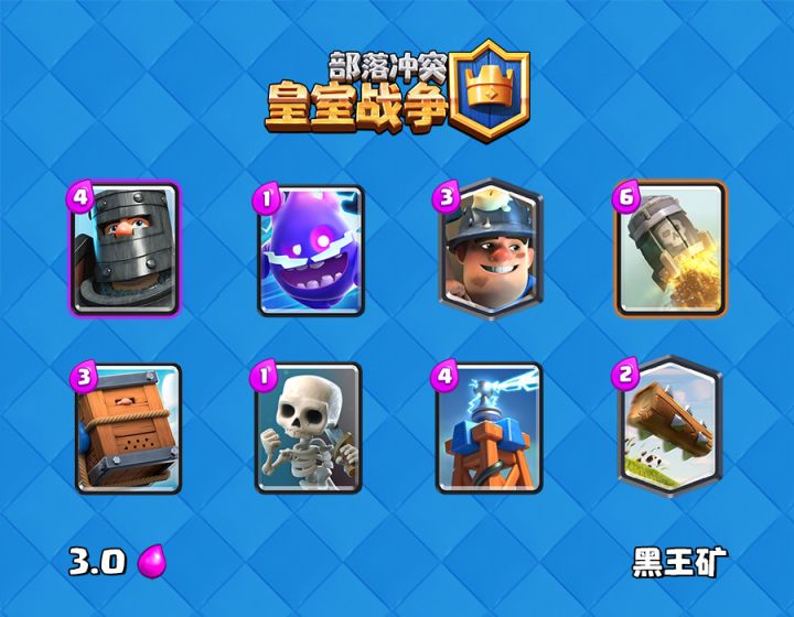 头顶一盏烛,手握一把铲;别看他灰头土脸,皇室竞技场上可没有他到不了的地方卡牌信息• 别名:矿工• 英文名:Miner• 出生日期:2016年5月3日• 星座:金牛座• 兴趣爱好:挖洞• 解锁方式:4阶竞技场• 好友(相似卡牌):哥布林钻机能力属性• 卡牌种类:军队• 部署时间:1秒• 攻击速度:1.2秒• 移动速度:快• 攻击射程:中距离近战• 目标:地面目标• 克制:公主、神箭游侠、圣水采集器• 被克制:骷髅军团、空中单位卡组推荐• 狗球矿• 黑王矿• 超骑炸弹矿