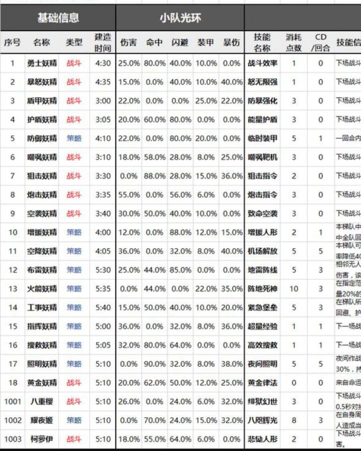 看到论坛里没有这方面的讲解我就补上了(*ゝ_●*)ノ=S=t=a=r================配合图片看更好图片来源于NGA游戏论坛目录2,3,4,5,6,7,8楼为妖精10,11,13楼为特典妖精17,23楼为妖精天赋的指南和介绍空袭妖精技能说明 致命空袭:下场战斗开场时呼叫空中打击,对全体敌人造成500伤害。推荐指数★★★★★加成 一般适用队伍 所有技能分析 优