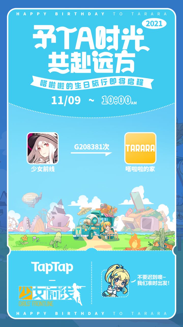 嗒啦啦的生日旅行即将启程,少女前线也收到了来自嗒啦啦的启程车票,11月9日准时出发!会有什么生日惊喜呢?一同期待吧!