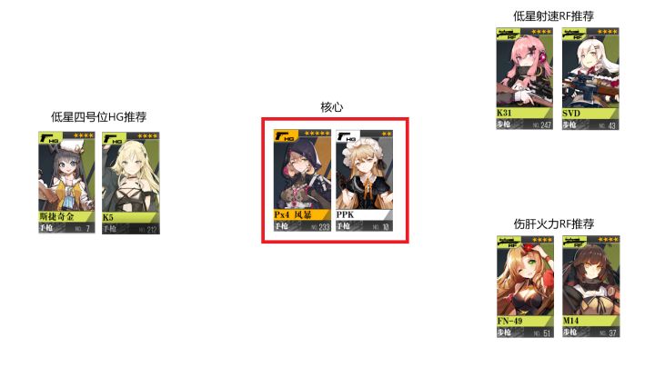前言:成型只需一个五星,输出高到在高达头上暴扣在风暴实装前,rf的顶配是李白维绿灰,而风暴实装后,直接淘汰了旧版的李白队,让rf队在输出上更加突出。众所周知风暴配57,而57是个限时打捞人形,一般刚入坑的玩家很难入手,而此时就会想到去组旧版李白队,而旧版李白是5个五星组成的队伍,很多玩家都一时组不出来,但是没有关系低配风暴队,成型只需一五星,输出高到在高达头上暴扣。首先介绍这队的核心也是必须有