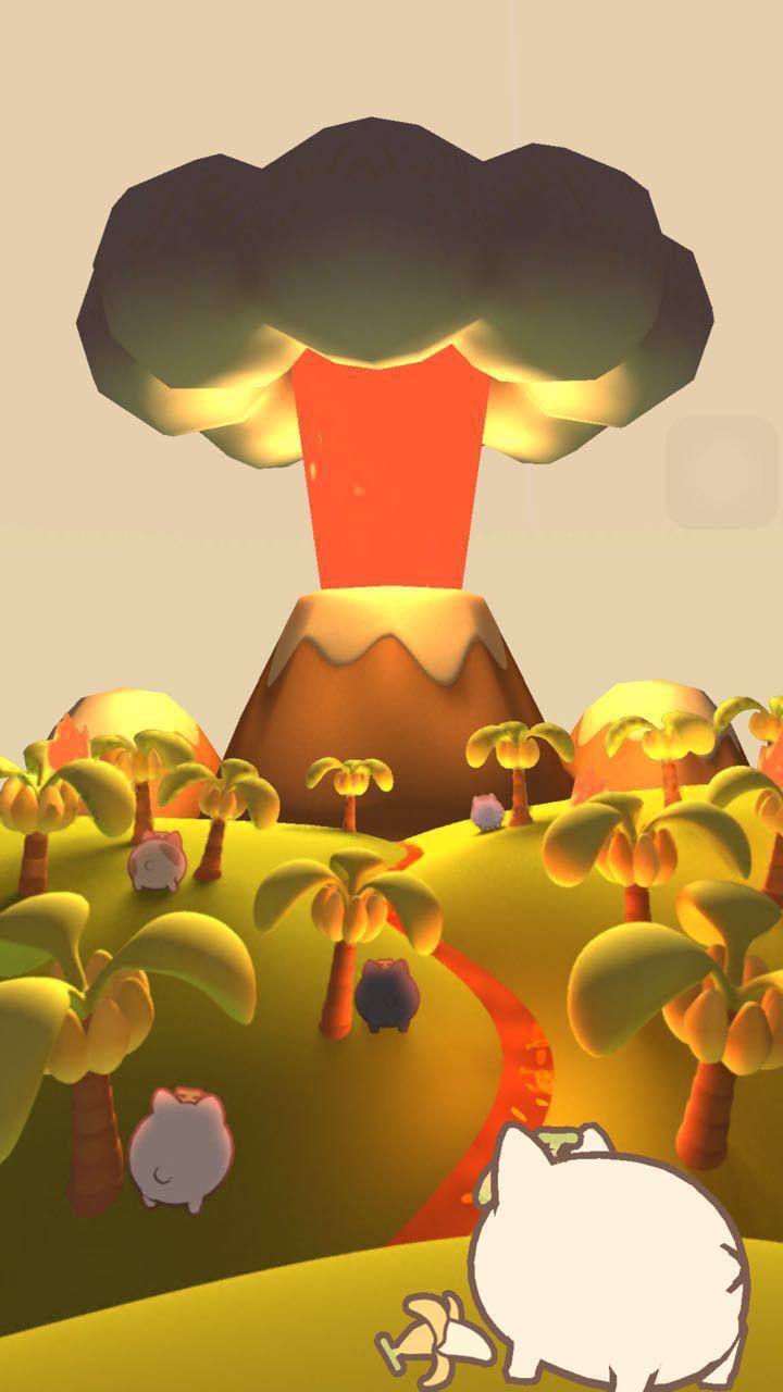 稀有物种香蕉猫正在吃香蕉,结果突然火山喷发了!吓得它香蕉都掉了转身就跑了起来,游戏就这样开始啦。这一切才没有想象的那么容易,我们正常的跑酷游戏都是横版的或者竖版主角背对着我们向前跑,而这次我们的香蕉猫一反常态的面对着我们向前跑,厉害了word猫,这让一开始玩这游戏的小伙伴很难适应甚至忍不住想要倒着拿手机,确实,我最开始玩这游戏的时候也是这样的,而且我确实也倒着玩了一会,最后还是放弃了,其实只要多玩