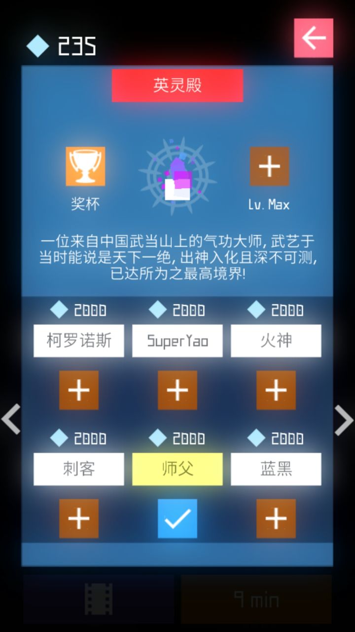 第一个页面是英灵选择,每个英灵都需要2000元解锁。图片上可以看到我已