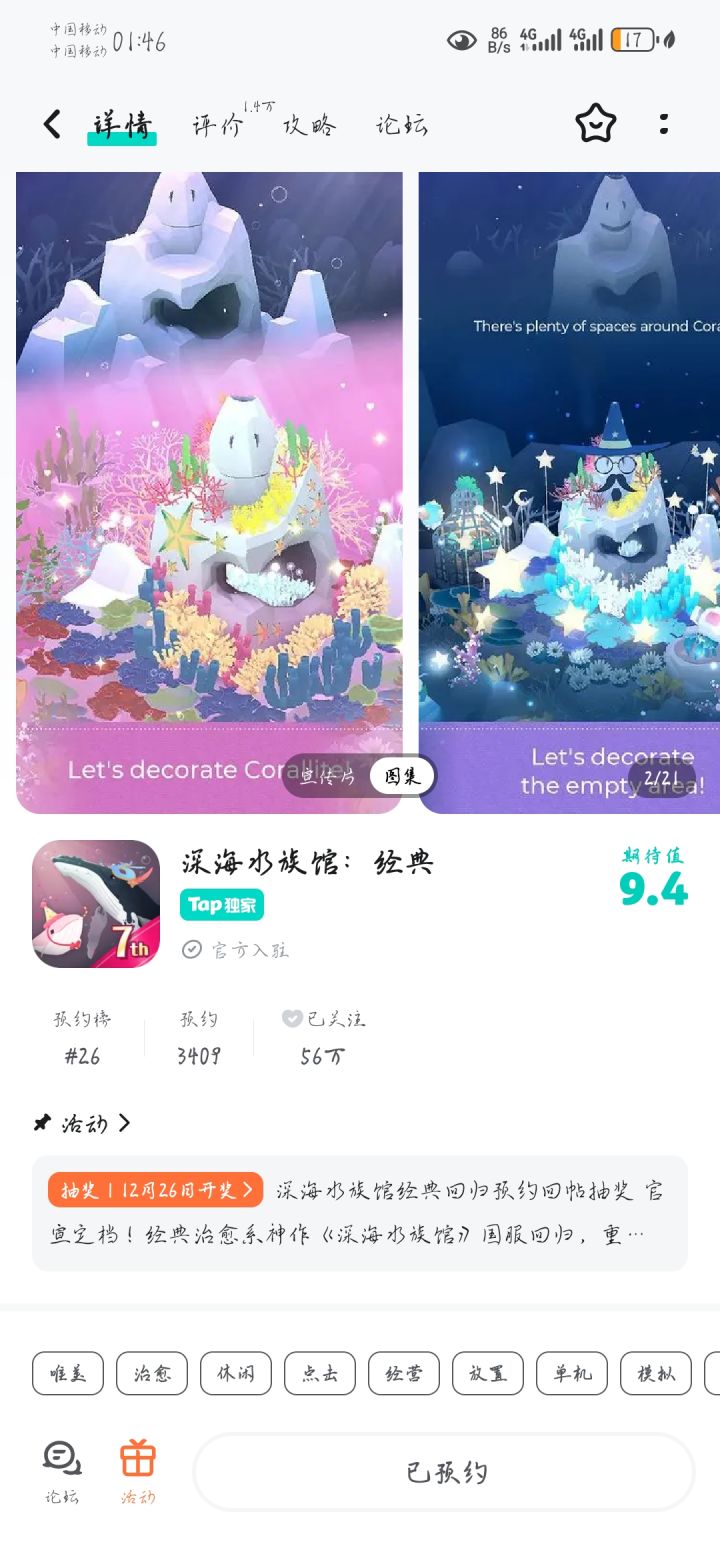 生命产出到了“DE”,到“DL”就能解锁最后一个珊瑚,意味着对普通鱼的收集就该毕业了。一两年前还能正常参加活动,获得各种主题装扮和活动鱼,现在都不会再推送活动了。不过还可以继续收集合成鱼和隐藏鱼,而且还有淡水地图可以游玩。