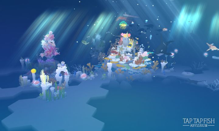 唯美的画面搭配柔和的音乐,真的像沉浸在深邃宁静的海底世界一样。当然,想让这个海底世界变得生机勃勃,就需要很多的“生命力”,而海底中央那座“孤独的珊瑚石”和生长在周围的各种珊瑚就能提供。珊瑚石的作用是点击手机屏幕可获得“生命力”,珊瑚的作用是每秒自动获得“生命力”(包括离线)。通过不断提升珊瑚石和珊瑚等级,“生命力”产出也随之增加。升级并使用技能可以在短时间能获得巨量的“生命力”。消耗“生命力”可以解锁各种各样的珊瑚和鱼。