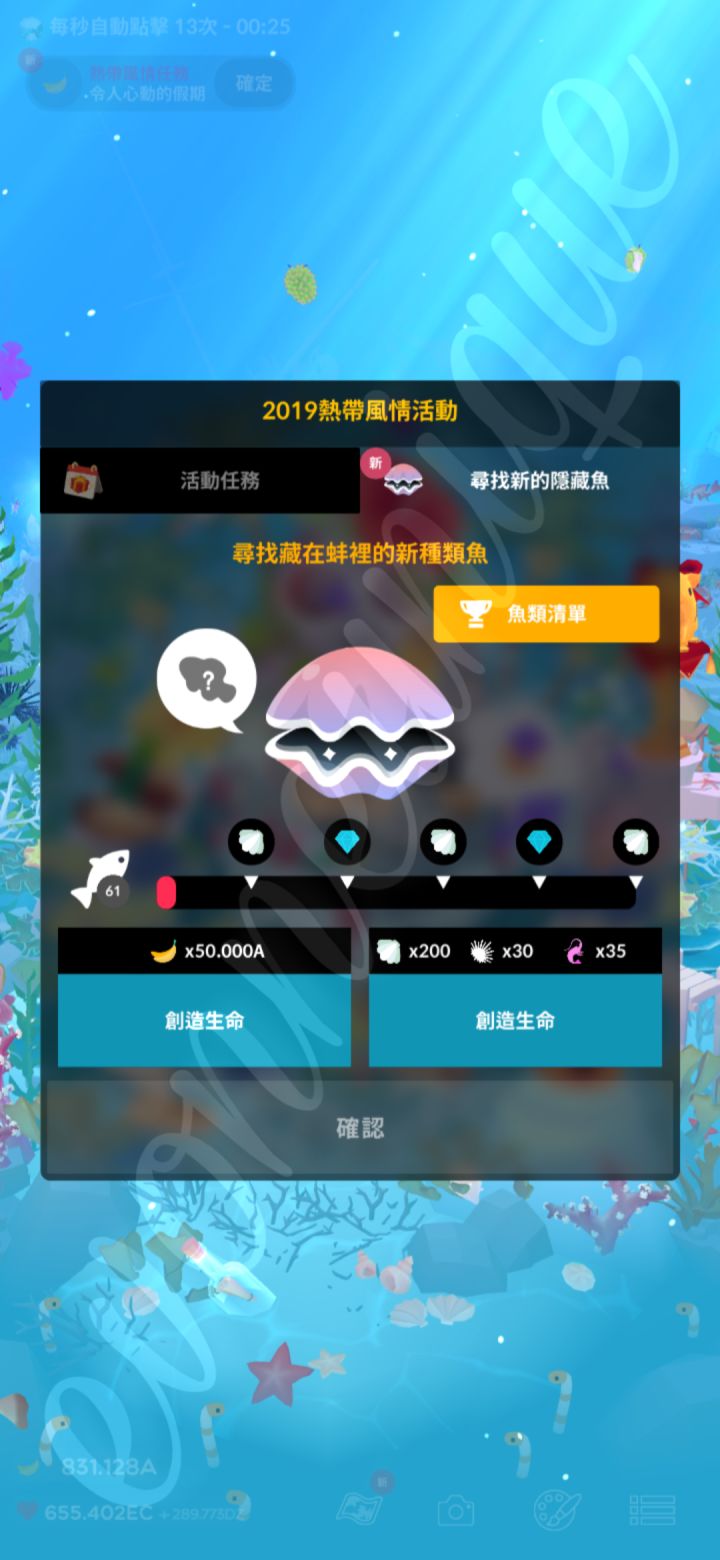 新增:2019热带风情活动·新·发现隐藏鱼/解锁隐藏鱼任务