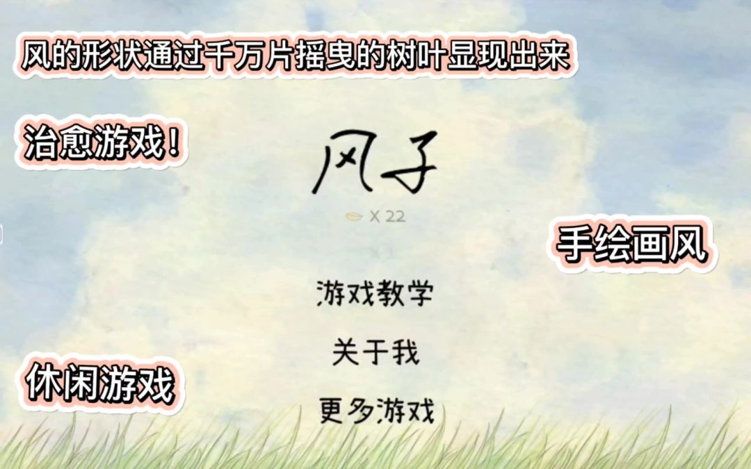 游戏主页:https://www.taptap.com/app/10587 · 治愈向游戏 · 与其说是游戏,不如说是作者情感的表达 · “你像风一样,从我的世界经过” · 你听到了视频中的风声吗?
