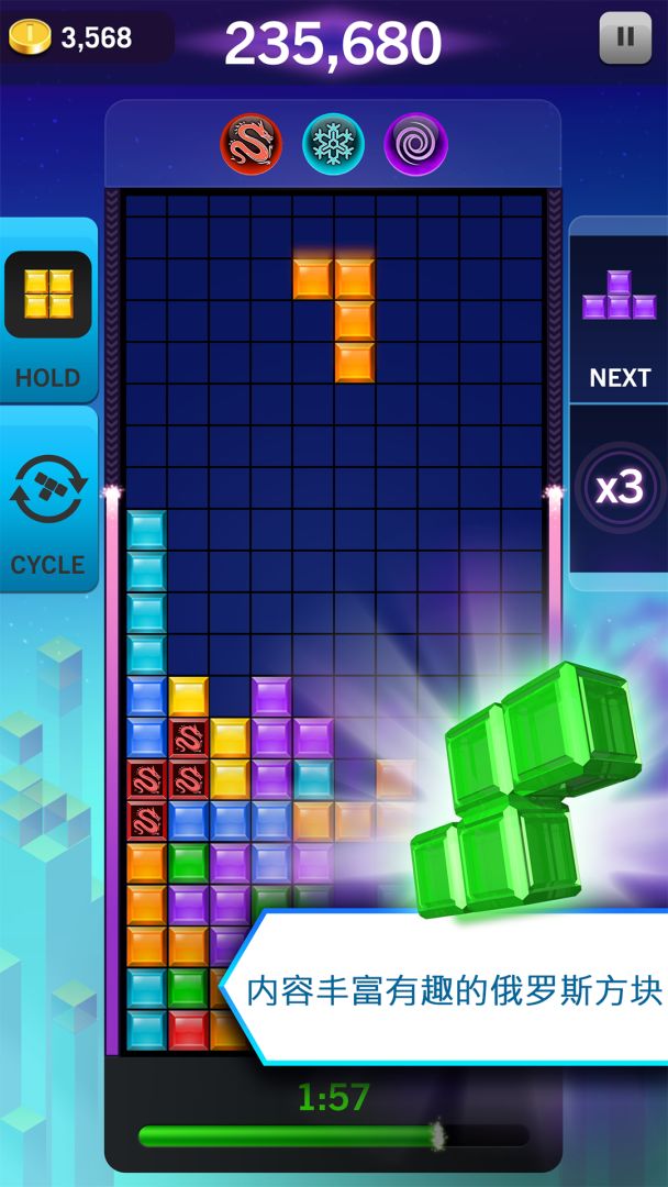 感受EA给全球最著名益智游戏之一带来的快节奏刺激体验!我们为两分钟一局的Tetris®带来了激动人心的崭新功能,包括精美的画面和氛围、在升级过程中获得的奖励辅助道具,以及紧张刺激的好友对战。