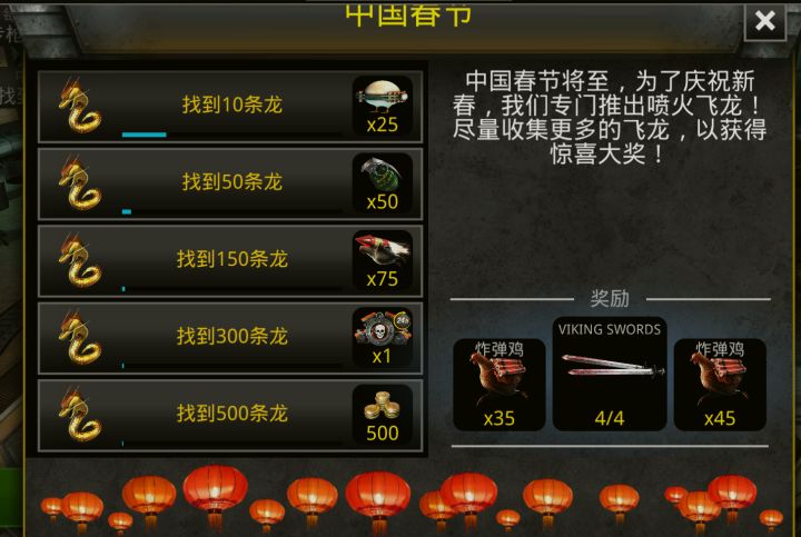 如图,想快速肝满500圣诞礼盒的,直接无脑刷中国地区任务一决雄雌即可,最好是手枪 + 机枪。