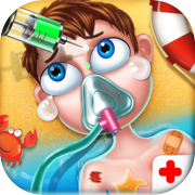 作為一名沙灘救生員,今天是你當值哦。 看!沙灘上有很多游泳和衝浪的人。哎呀!有人受傷了,我們必須馬上去解救和治療他們!
