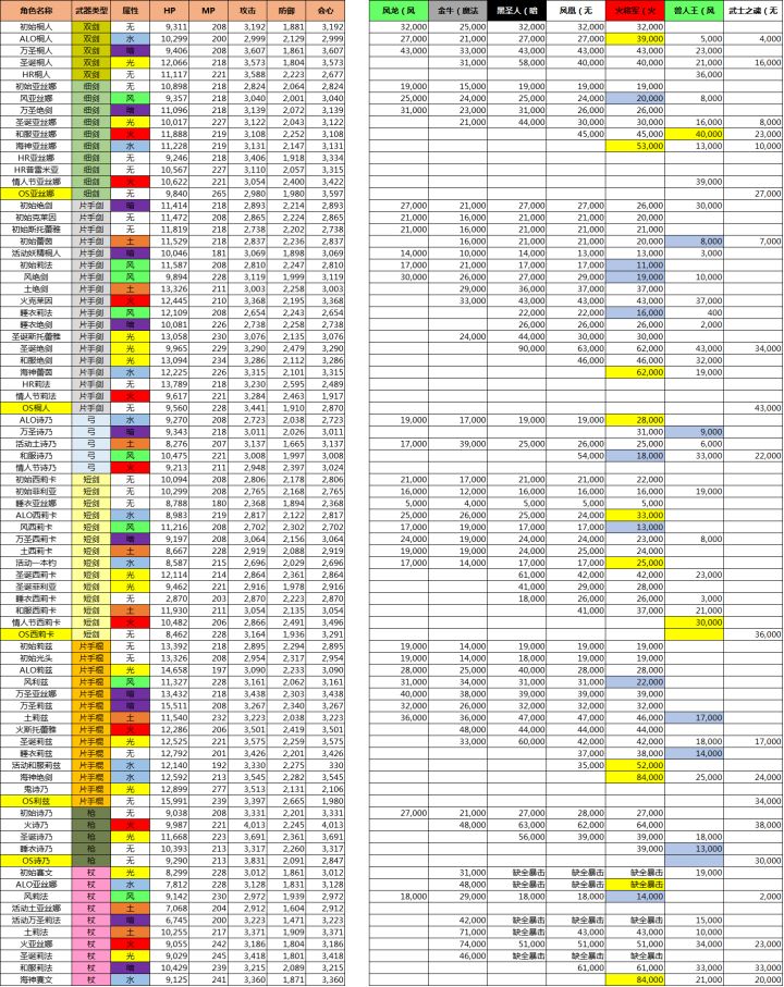 说明:这个表的数据是我从sao-memodefu网站看到的,原图看着费劲索性重新翻译一遍。数据为四星角色打绝级排位boss时,裸装全暴击伤害。因为之前有做过类似的测试,比较了一下伤害基本吻合,所以数据基本可信。由于手打难免会有数据错漏,如果发现不符合常理的地方清艾特我及时更正,之后的新角色伤害我也会更新——来自一个苦逼的搬运工另:转载请告知,别一声不响拿去用了