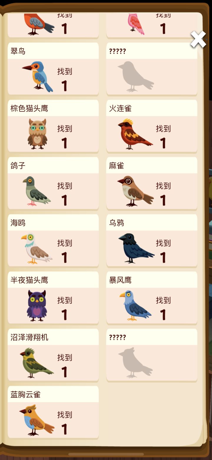 有没有已经玩完的大佬知道我缺的这两只鸟是什么时候在哪里可以发现的啊