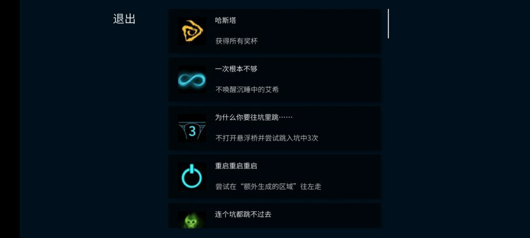 这是当时taptap测试时的图了 国产手游《艾希》(ICEY)以其独特的meta元素和赛博朋克风格获得了玩家的喜爱,游戏内设有丰富的成就系统。以下是一些成就及其达成方法: 基础成就 一次根本不够:在游戏开始时,不按照提示唤醒艾希,等待一段时间后即可达成2。 为什么你要往坑里跳……:在特定位置,无视旁白的指示,连续跳入坑中三次2。 重启重启重启:完成上述跳坑成就后,进入生成的区域并向左走2。 连个坑