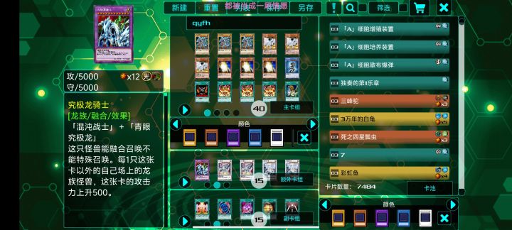 3青眼白龙3白色灵龙3太古白石3苦涩的选择3天使的施舍3生还宝札3死者苏生2融合3复活福音3银龙轰咆3沉默死者1混沌战士1混沌战士仪式2贪欲之瓶可以补龙之灵庙或者墓地召唤卡,开局有苦选扔太古白石白灵龙就行了,或者补未来召唤开场融合进墓地,记得别扔贪欲之瓶和生还宝札,宝札被陷阱进墓要用贪欲拿回卡组,因为宝札效果是墓召抽卡,第二张苦选扔一张苦选有天使扔天使没天使扔银龙轰咆或