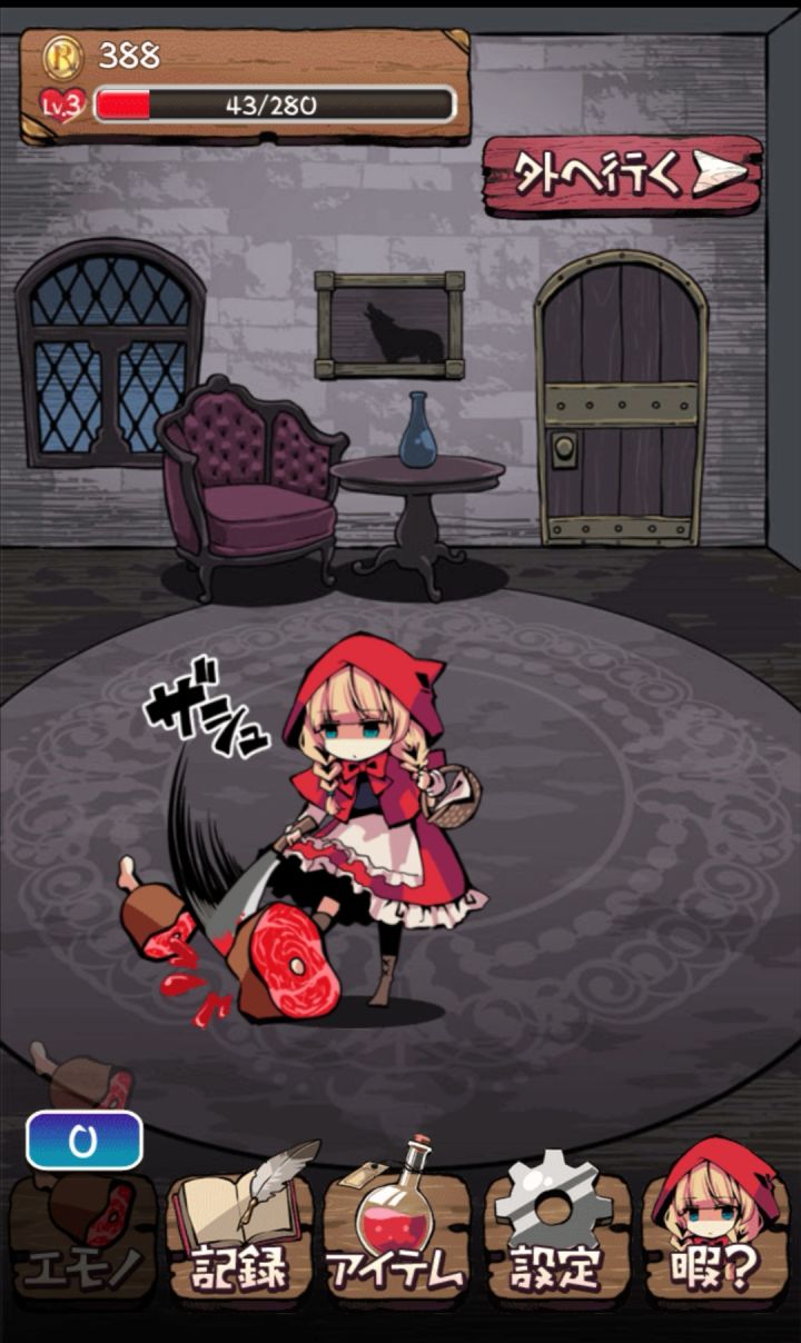 剧情不出意外的小红帽又和大灰狼在一起了,我为什么要说又?游戏性没什么可说的就是点点点,我就当成练手速的来玩的尤其是玩音游的话,杀兔子和捡金币可以练双押多押和交互,10s双倍经验就练快速单点 ,我最快也就60下截了几张比较有意思的图和通关截图