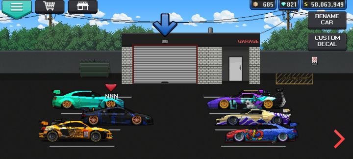 很好的游戏,虽然是像素画风,但是车辆很还原,这个游戏的玩点在于自定义改装、直线加速赛和街头比赛,多款车辆可以选择,改装配件丰富