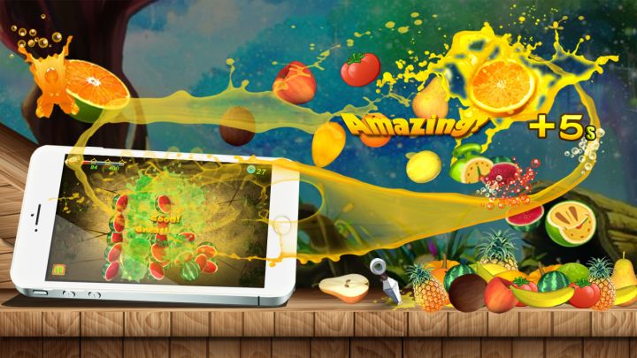 按住手指在你的手在空中扫朝水果降低,并得到分数。不切水果炸弹,那么你将失去的...