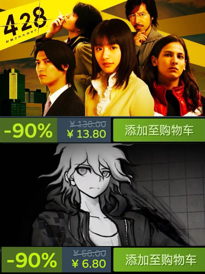 🎮 《428:被封锁的涩谷》Steam一折,¥13.8,折扣到3月20日。🎮 《弹丸论破2:再见绝望学园》Steam一折新史低,¥6.8,折扣到3月20日🎮 《弹丸论破外传:绝对绝望少女》Steam一折新史低,¥8.8,折扣到3月20日三款游戏应该不用多做介绍了,蝴蝶效应多支线AVG神作《428:被封锁的涩谷》、大家都很喜欢的弹丸论破系列,史低价都入手不亏。