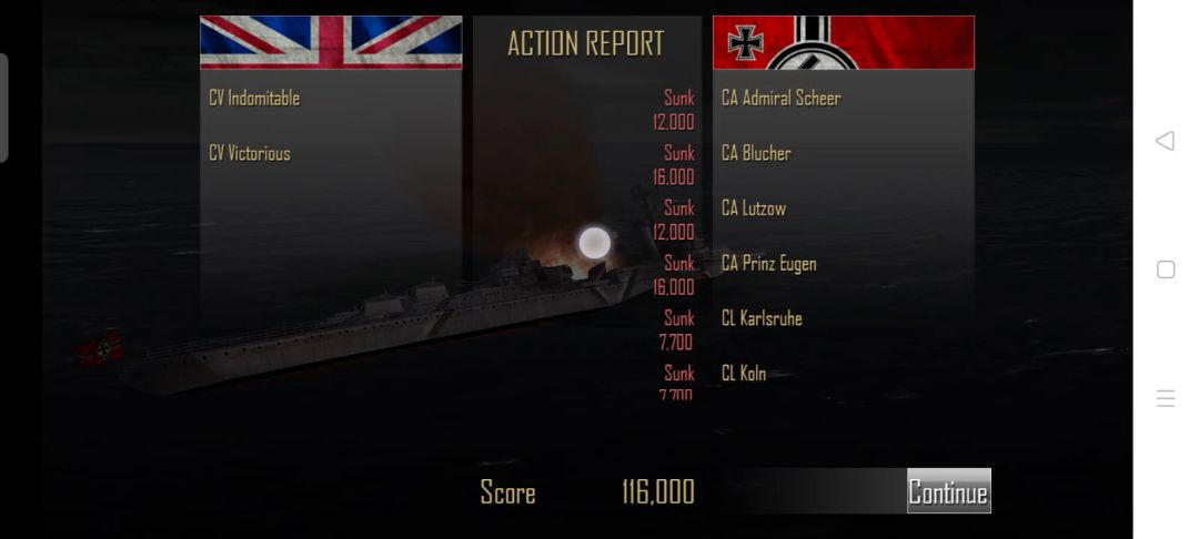 64架轰炸机弹药:炸弹,损失15架飞机, 造成一些近矢弹,但是大部分炸弹均已命中舰体