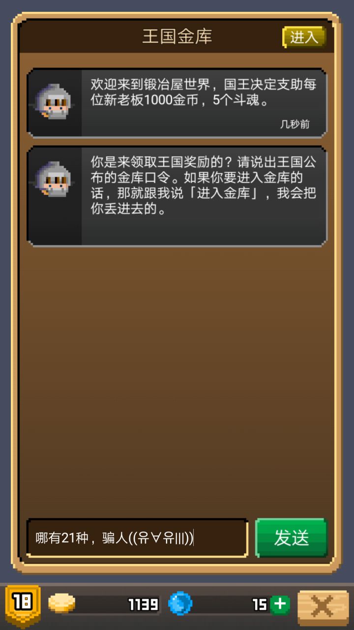闲的没事写着玩儿先写奖励(*σ´∀`)σ1.进去前厅就有宝箱,好像是金币2.大厅里有红宝箱,在后面的小巷里拿到红钥匙后,第二次再进金库就可以开了,随机素材3.进入铁门后的宝箱有大银块4.从青铜大门掉下来后,观察木头碎片会有小木头(每次进来都有)5.到了最后的大厅,观察底座,去搬石头,再回到前面洞窟里的池塘,往里投石子,会有3000金币和10斗魂6.正常结局(这里就不写了,已经有不少人