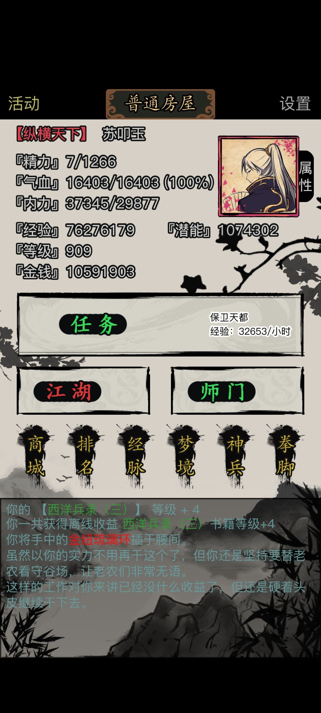 进入平安小镇的浮云寺门与龙渊对话获得物品,不同门派对应不同物品,使用后获得奖励,官府获得1000黄金,幽冥获得4个天香玉露,其余门派不知道,欢迎下方留言。