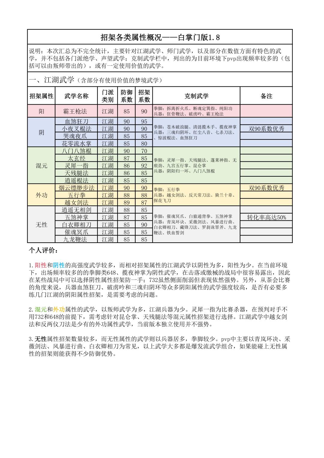 我重新做了张表,大家自己看吧。 更新日志: 扩展师门武学(非门派内功、绝学) 2024.11.2 增加江湖武学描述 2024.11.4 增加部分武学,增加师门武学页中非绑定内功栏 2024.11.24 增加部分江湖武学。 2024.12.26 增加师门武学属性针对表 2025.1.1 增加部分更新武学 2025.12.9 修正和增加部分武学 2026.1.7