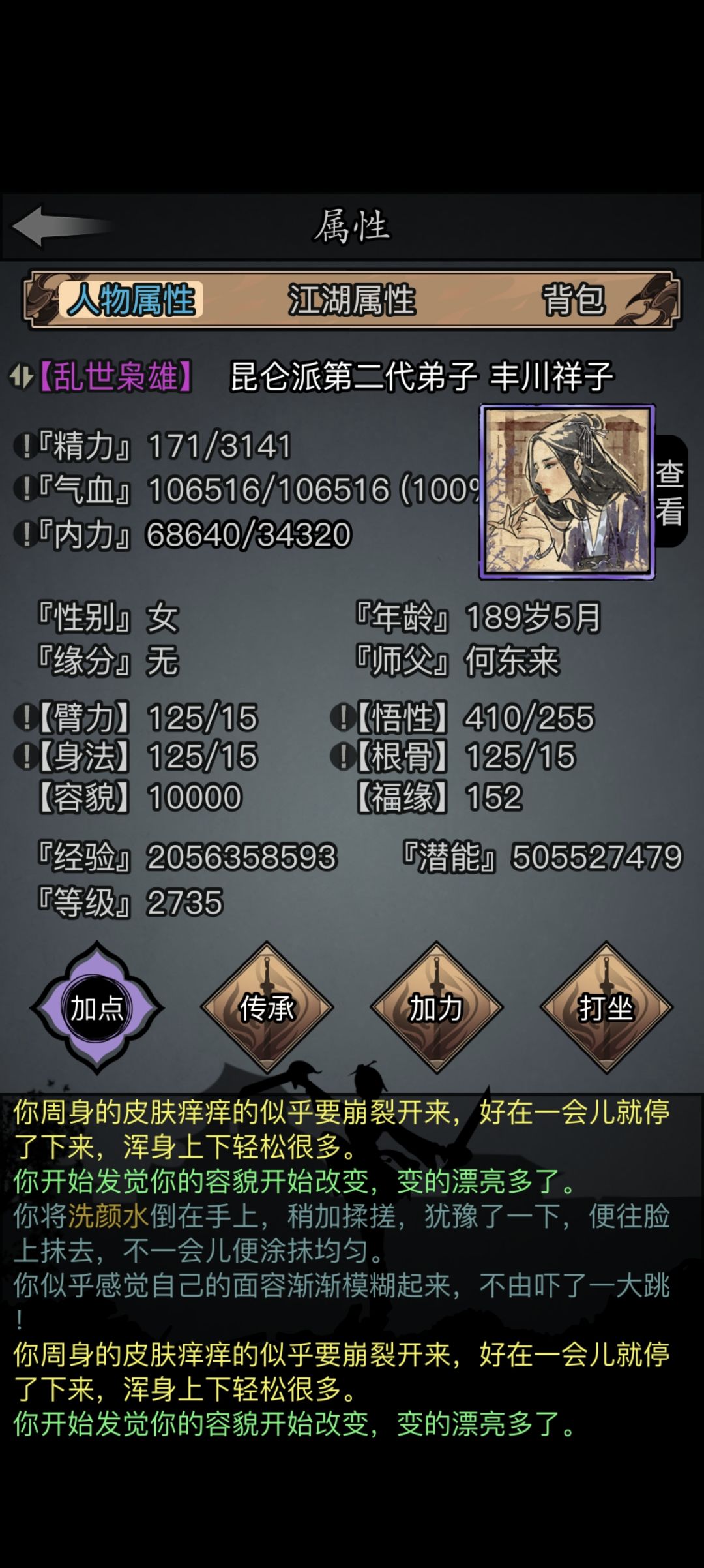 激雷逆天掌 泰皇滅神拳 内功:量撵昄神功 轻功:嫦跳如阿婆步法 核心思路:首先,延续昆仑原本昆仑掌一系的掌法门派的发展路线,非常合理。 其次,战斗以发扬闪避为核心。 通过施加闪避buff,通过闪避可以回复血量内力,同时叠加“风灵”buff,风灵buff叠加10曾以后,可以使用月影决,造成巨量透劲伤害。 惧怕:技能为主要输出手段的对手 克制:依赖平a叠层与输出的对手 建议加点:265身法