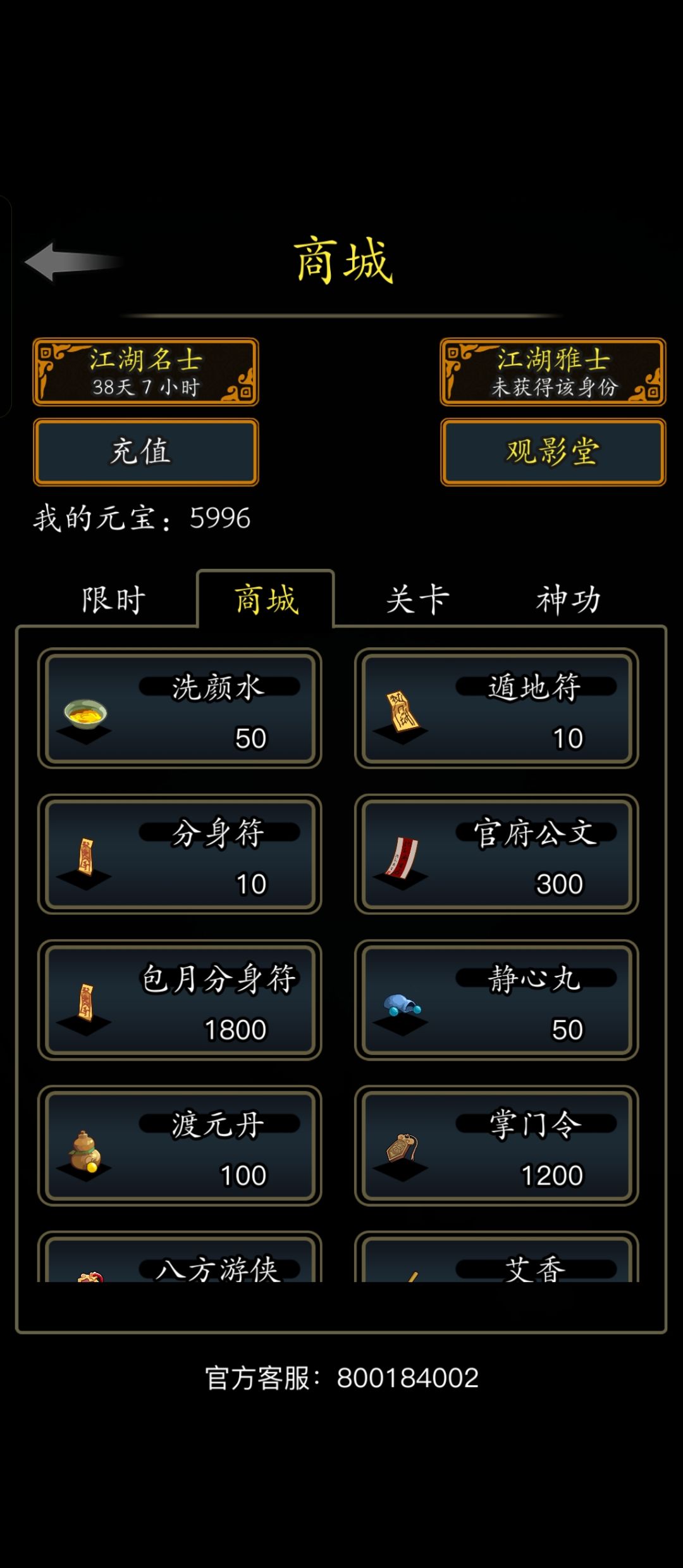 内功 神龟吐纳术 神龟虽寿 给自己施加一个罡气护盾,持续一段时间。该护盾效果与自身最大生命值有关。如果当护盾持续时间结束时,还未被打破,剩余护盾量会转化为气血上限。 犹有竟时 给自己施加持续回血效果,如果自身有减益效果,恢复更多血量。 轻功 灵蛇回溯法 腾蛇乘雾 可在被控制时使用,对自己造成最大生命值伤害,解除控制效果,后续获得截脉抵抗效果,持续一段时间 真武荡魔令 绑定杆子鞭 令出如山 主动施展