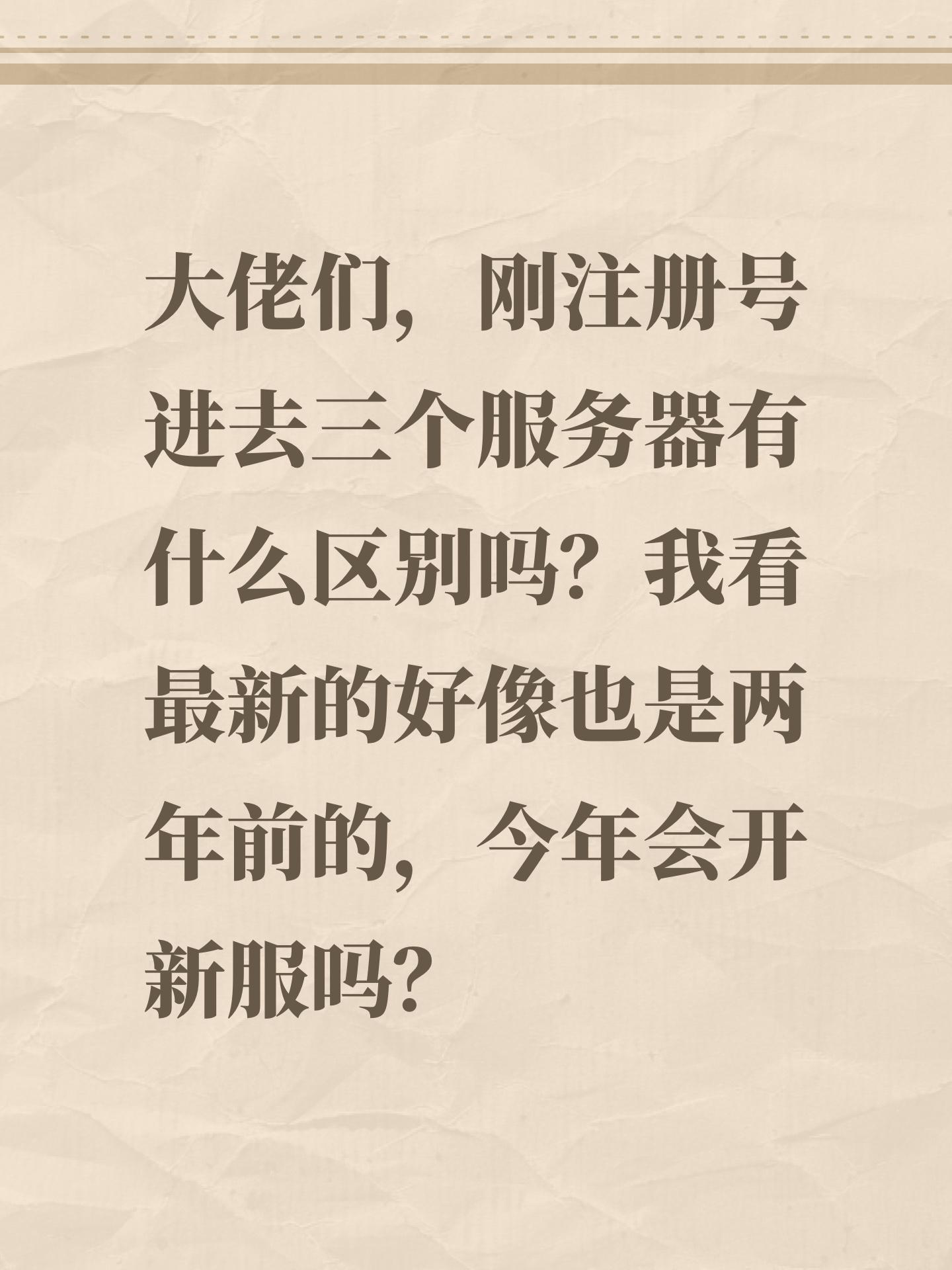 大佬们,刚注册号进去三个服务器有什么区别吗?我看最新的好像也是两年前的,今年会开新服吗?