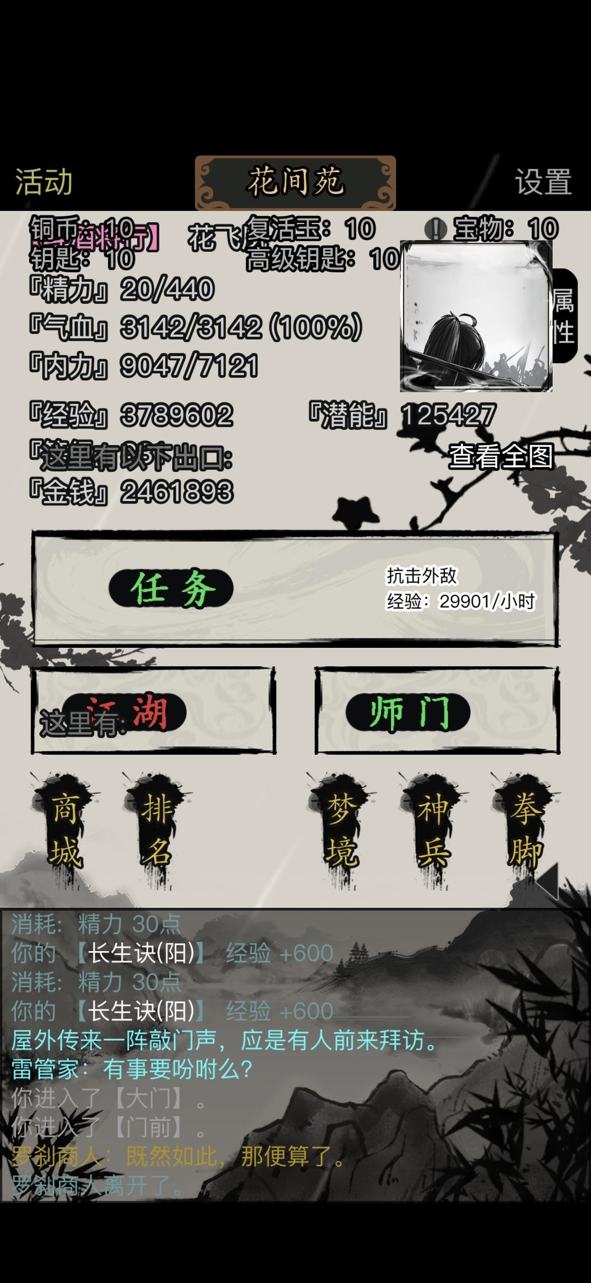 我叫贼眉鼠眼,家住在襄阳城外东郊东的海棠村,未婚,现今在天狼教扎职,每天回家都会光顾的寻宝摊位购买3个掘金铲。不抽烟,酒也是浅尝即止。晚上11点上床睡觉,每天一定要睡满8个小时。睡前会喝一杯天香玉露,练习两个时辰的武功,让身体放松下来才上床,这样通常就能一觉睡到天亮。早上醒来就像小婴儿一样,不残留半点疲劳和压力。