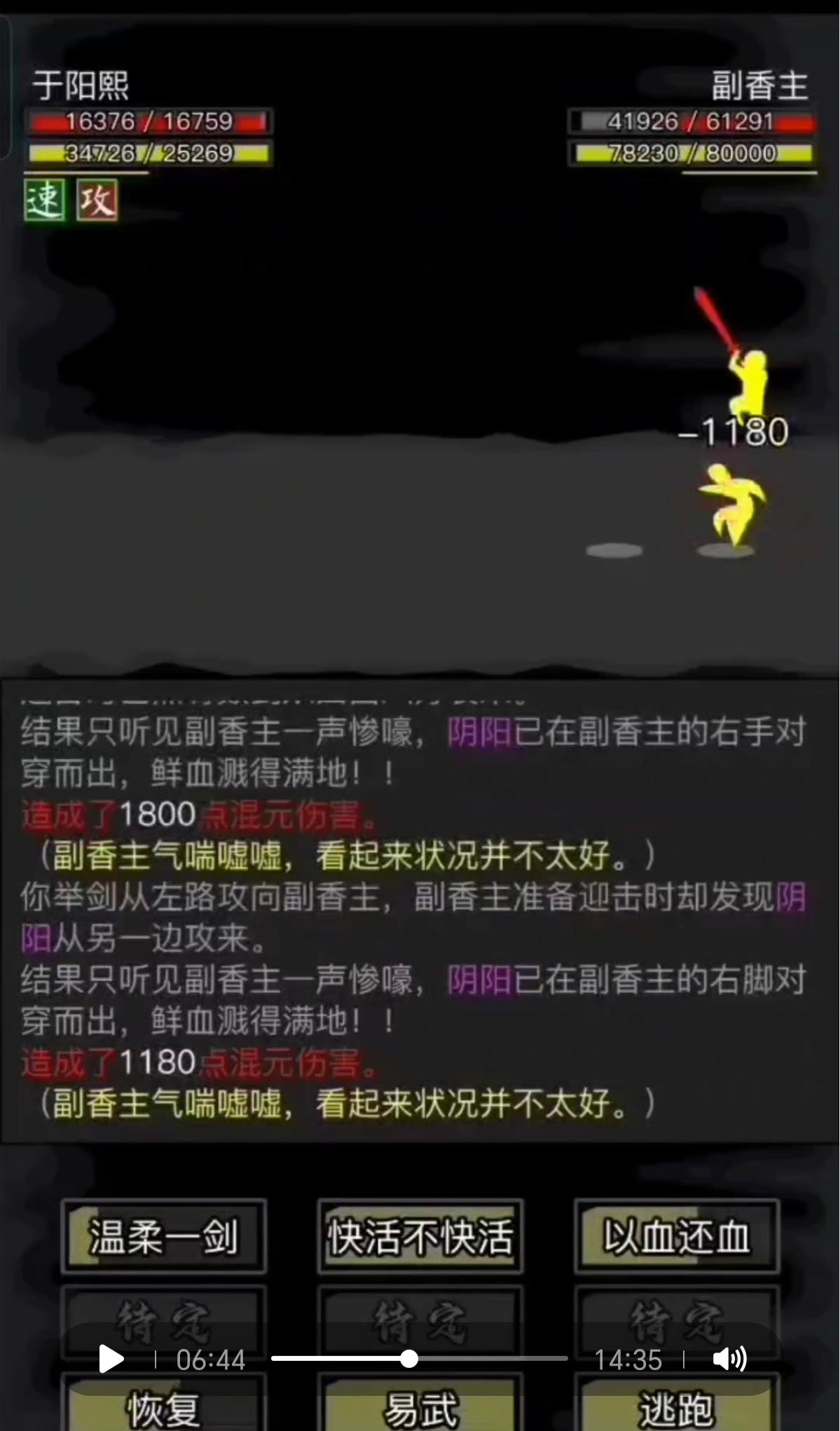如题,刚刚4转啦,三转去了财神帮学快活剑法,起初是因为看到家门口要切磋的拜访者,他们玩快活剑好帅,但是……他们不刮我刮呀∑(;°Д°)也可能是因为我比较躺平哈哈哈。之前都不会打不过最厉害的那个拜访者的,现在好了,刮不过去,他变成我家的守门员了≡ω≡ 快活剑的主动技比较单调,增速+增伤+温柔一剑(打出伤害的技能),没有我2转五毒那么丰富吧,而且我感觉伤害不怎么样,以血还血还要扣自己的血,得看看自