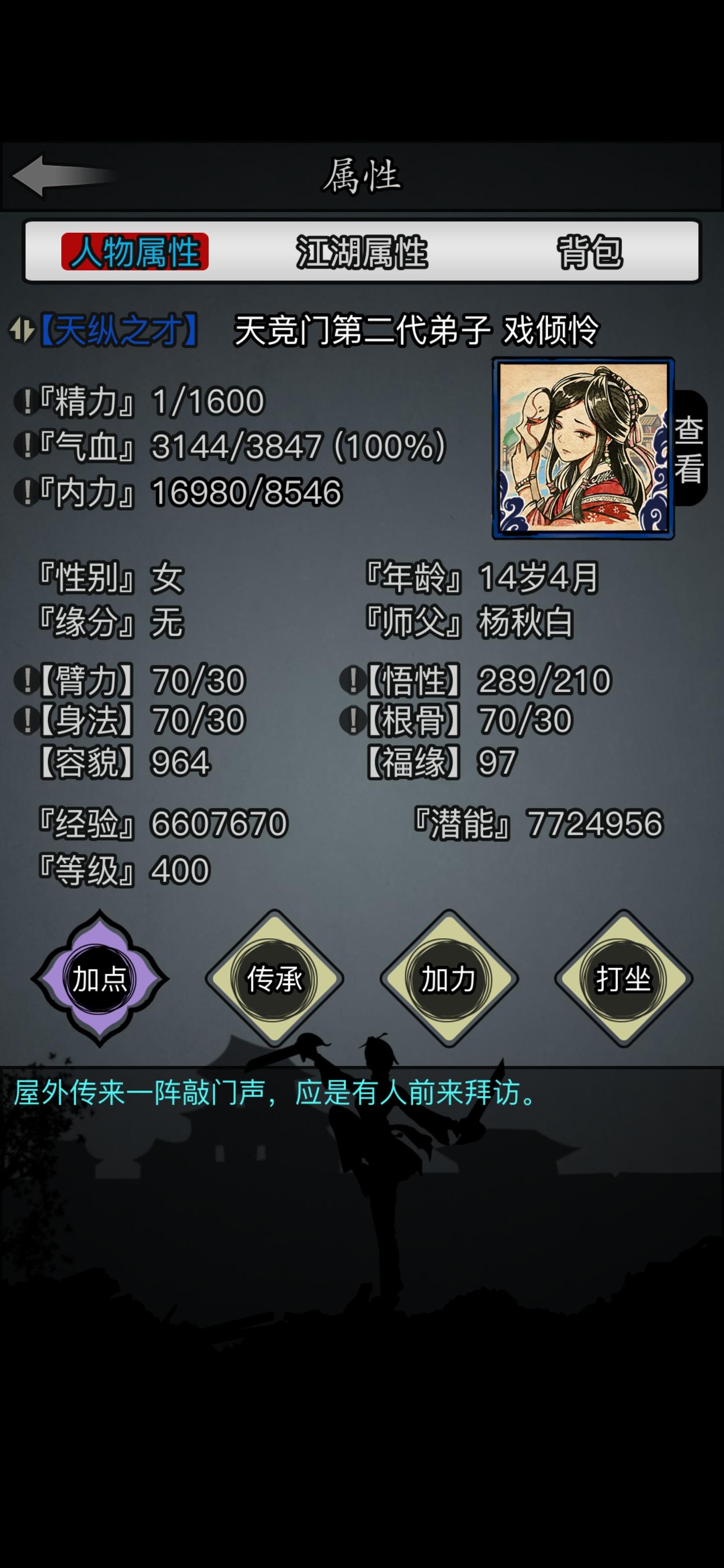 这是一期偏新手向的攻略,我会从头开始一点点解决各位少侠的问题,由于是第一次做攻略,如有任何差错,欢迎指正(参考放置江湖wiki,感谢各位前辈)附地址一、出身选择在少侠确定了性别之后,会让各位少侠选择出身很多少侠会觉得这个出身与性别相似,不会对游戏本身产生影响,等到想改的时候已经来不及了孤儿(强推)(主流)孤儿开局的优势就在于福源会比其他出身更高,福源决定了角色的挂机收益,而