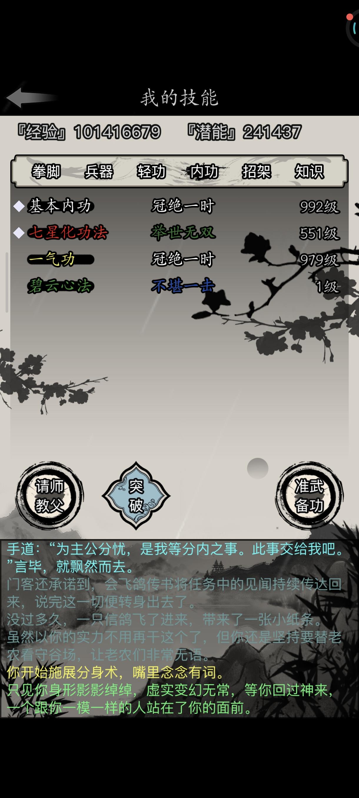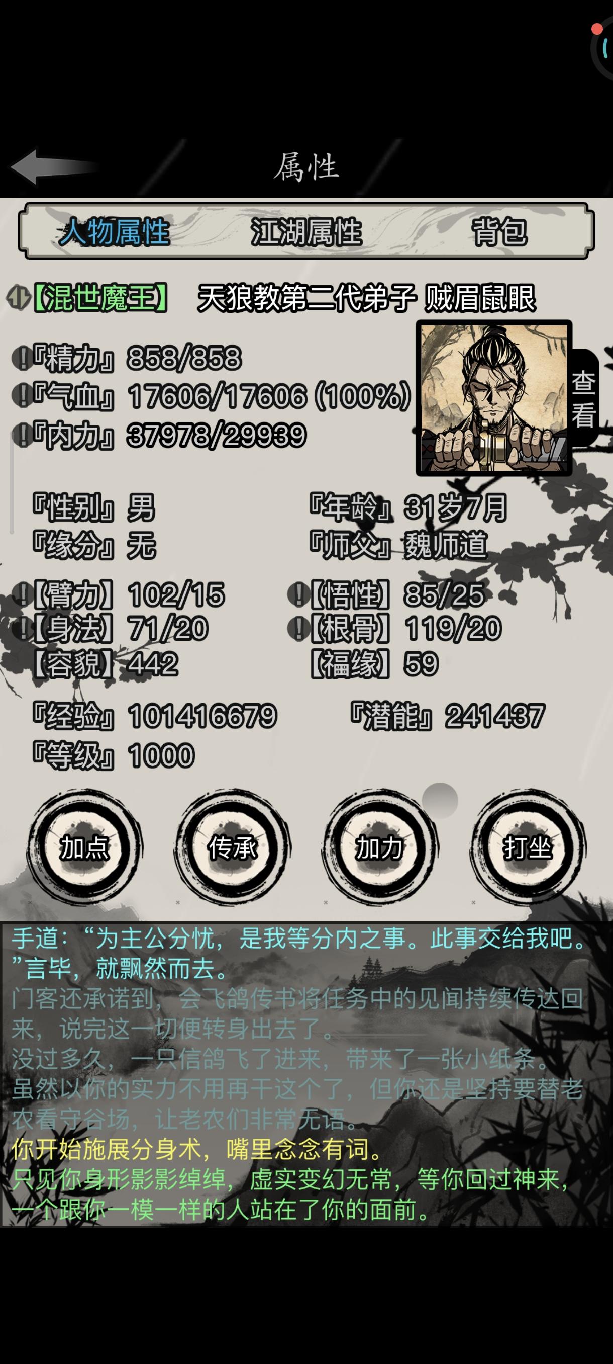 开始十几天感觉人龙不了了就摆烂了点,后面稍微算了一下发现这转还是有机会的。本来还想练个辟邪拉基础剑法等级,结果到后面冲人龙的时候发现轻功只能练这个了,不然这转到不了,遗产也只有576级潜龙,根本不够用。早知道就直接练华胥引了,好在轻功没拖很大后腿。越女剑放天都峰配上潜龙遗产,第一天打完了35,不过后几天才开始打折掌慢了几步还是比较可惜。另外再说一句,天魔解体就是爽,飞贼可以秒了打日常速度一下子就快