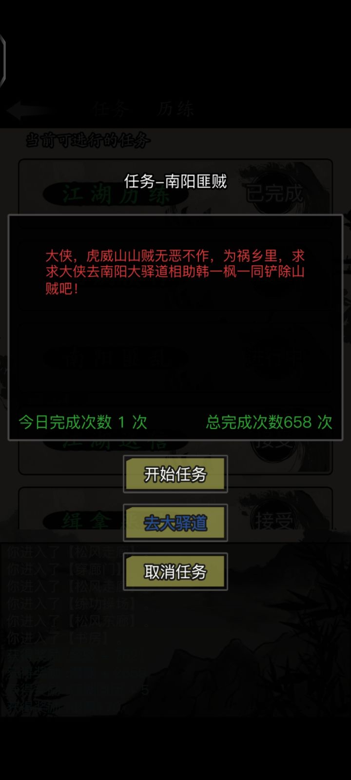 魔影初现(难度1~3)注:箭头表示走路方向,后缀数字表示走几步,没有后缀默认一步东城门:交谈何岐(←↑←)客栈前院:询问何岐(→↓)金碧路:观察黑衣人(↑←)客栈前院:突袭黑衣人<捡起重光令牌>客栈:强制战斗沙千里二楼厢房:丁红蝶<出示重光令牌>,获得灵解散(↓→)客栈前院:战斗重光教众(→,↓,←4,↓)弥勒寺山门:交谈真参(←3)大雄宝殿:信玄大师<喂服解药>天