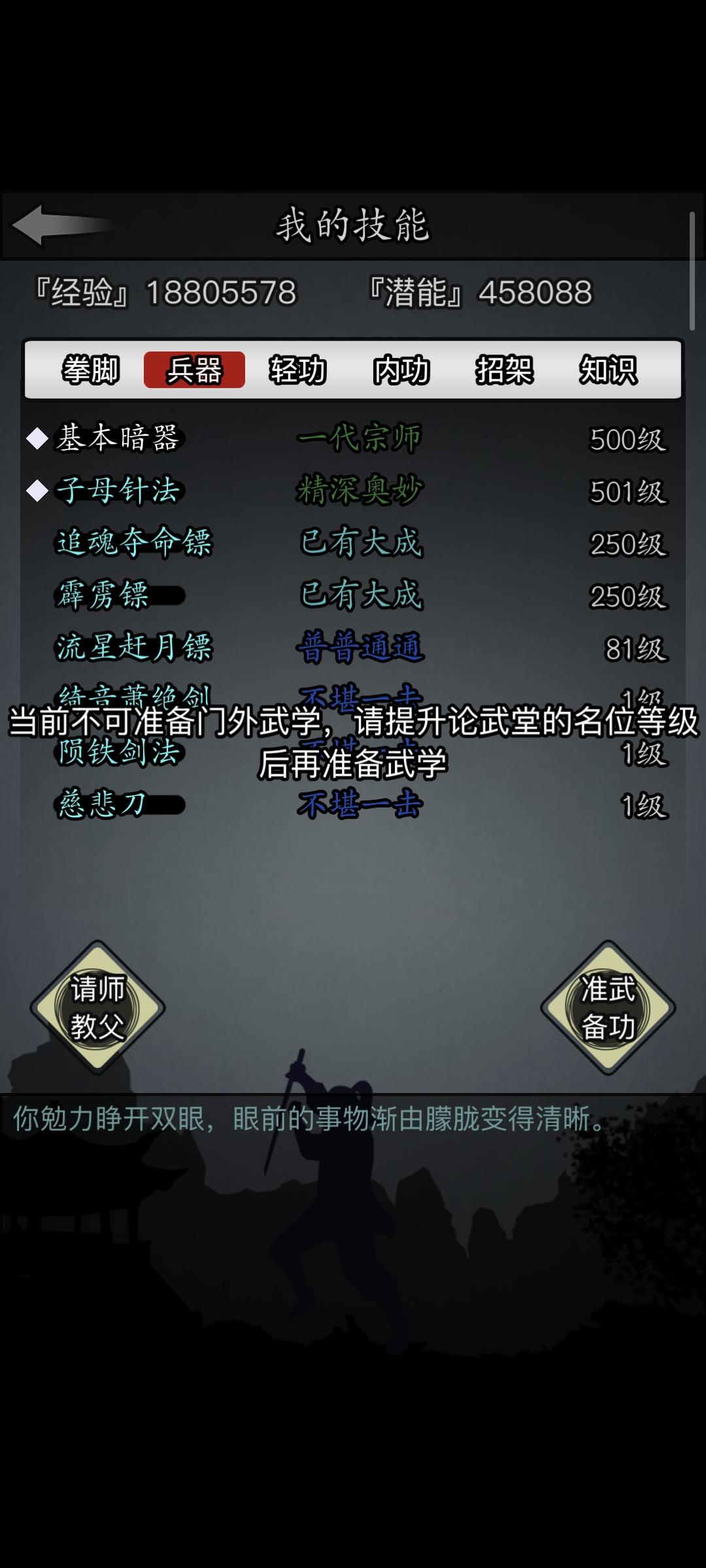 本周门派武学全部500买了垫子,开始练遗产了,目前越女太玄全部530目测还有个六七天到600级,22天左右完成传承疑问:静心丹怎么用比较合理,两组已经快用没了。