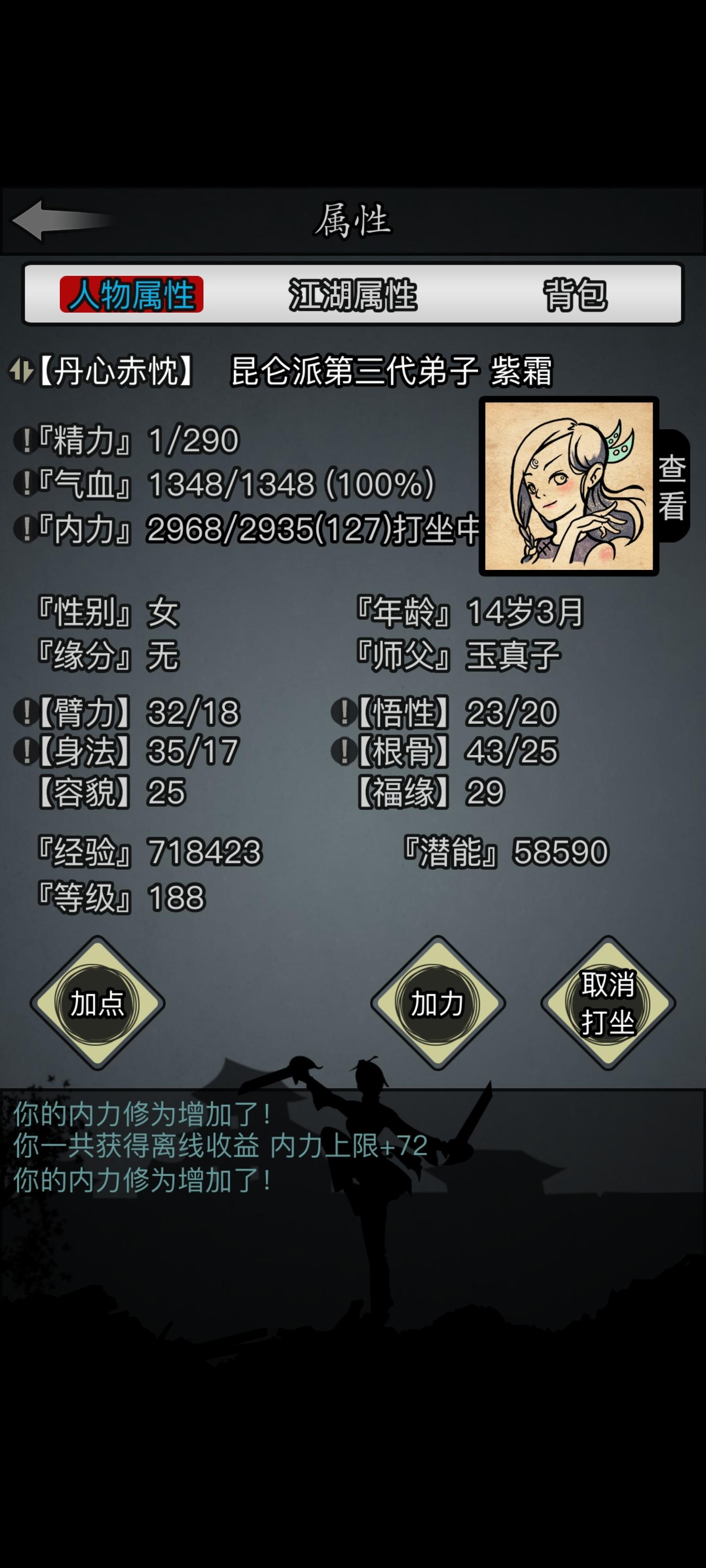前段时间突然想要开一个新号,于是决定要不就玩一下六世散人。立此贴为起点,督促自己坚持下去!其实接触这游戏蛮久了,我是当年小程序玩家(没错,放置江湖出过小程序版本),当时玩到三转就关服了,也没要退款,而是移植到新服,后来玩了几天不想玩了就给YES了。所以,算是弥补当年的遗憾,也算是重新拾起初入江湖时的热情。零转!零氪!六世散人!从这里开始!从今天开始我会以至少三天一更新的速度发布此角色的进