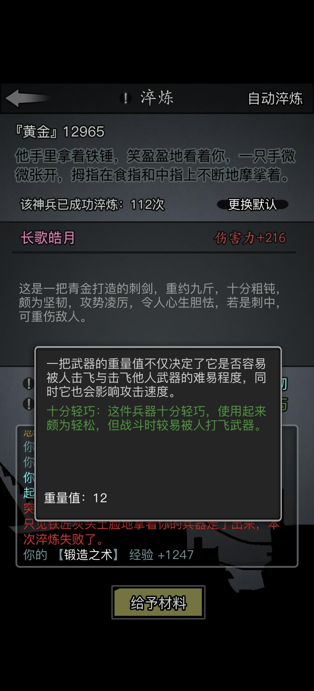 我玄铁淬了一百多次,为什么重量还是只有12啊,会不会不能15重了,求求指点