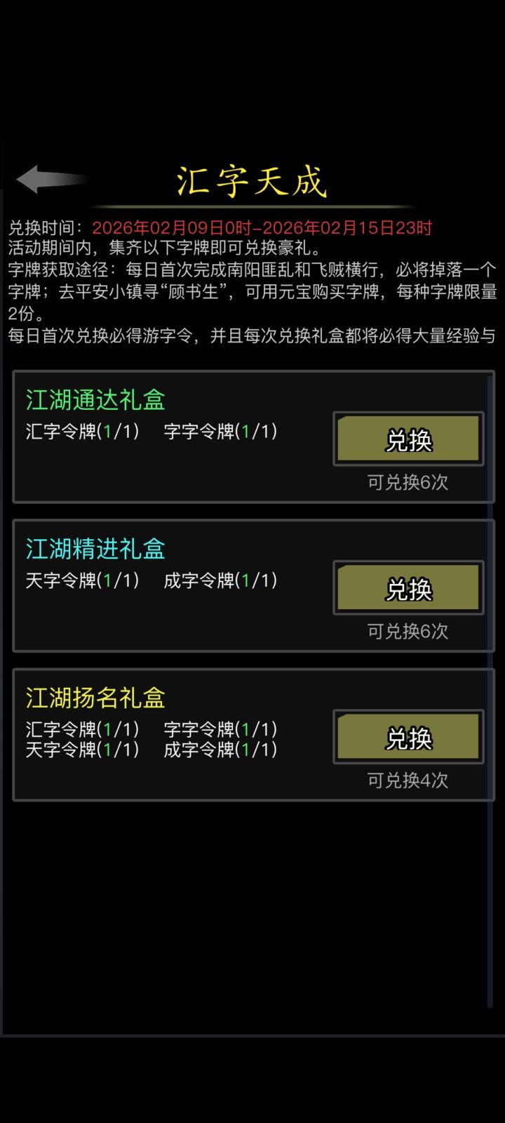 花费20元宝买了天成令牌,想趁这周的活动拿追影随风枪玩,看wiki说强度不行,但总比百胜刀法强吧