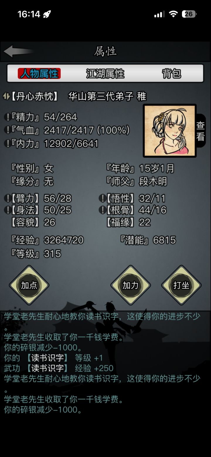 初中接触的放置江湖,现在大学快毕业了!想起这个游戏就想回来玩一下,从来没接触过华山,是误触后选中加入。结局就是越玩越迷糊…求指点 #放置江湖