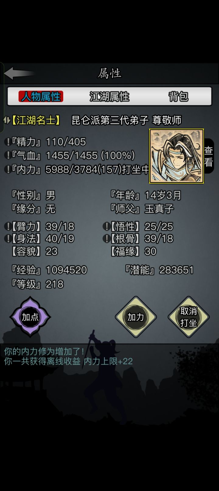 前段时间突然想要开一个新号,于是决定要不就玩一下六世散人。立此贴为起点,督促自己坚持下去!其实接触这游戏蛮久了,我是当年小程序玩家(没错,放置江湖出过小程序版本),当时玩到三转就关服了,也没要退款,而是移植到新服,后来玩了几天不想玩了就给YES了。所以,算是弥补当年的遗憾,也算是重新拾起初入江湖时的热情。零转!零氪!六世散人!从这里开始!从今天开始我会以至少三天一更新的速度发布此角色的进