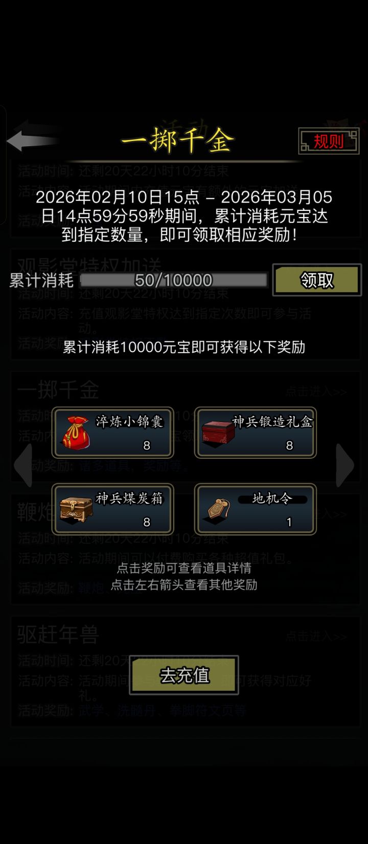 花费20元宝买了天成令牌,想趁这周的活动拿追影随风枪玩,看wiki说强度不行,但总比百胜刀法强吧