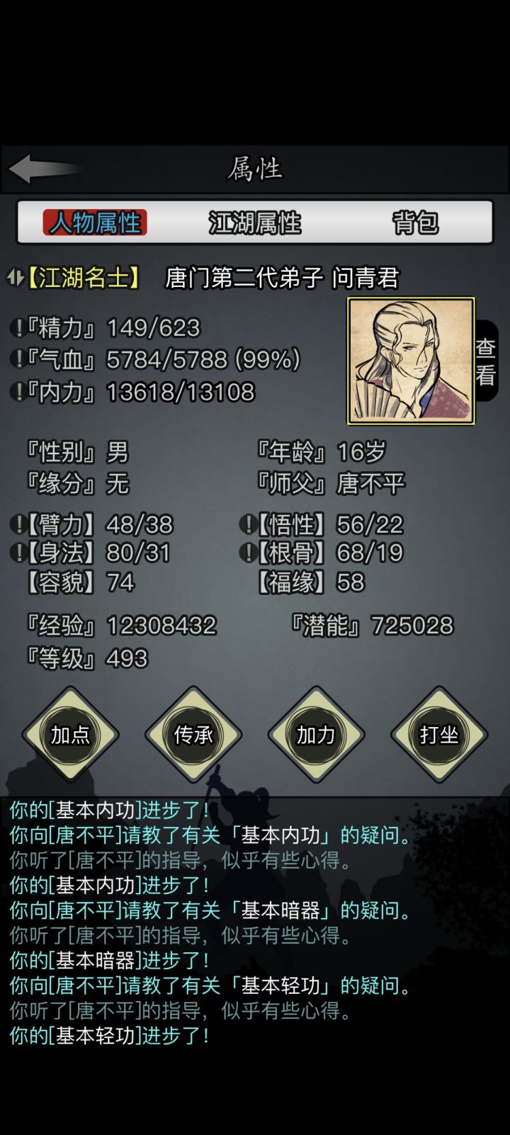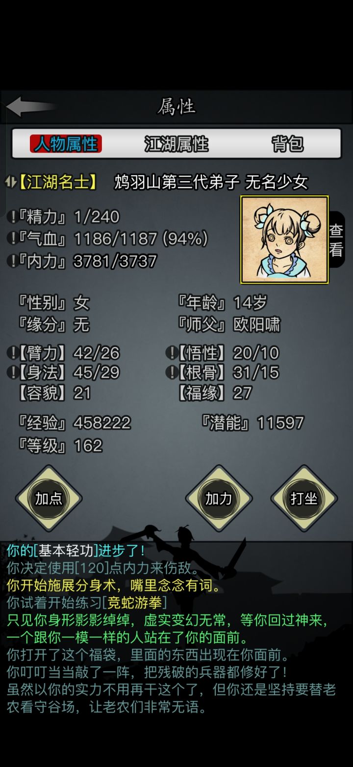 前段时间突然想要开一个新号,于是决定要不就玩一下六世散人。立此贴为起点,督促自己坚持下去!其实接触这游戏蛮久了,我是当年小程序玩家(没错,放置江湖出过小程序版本),当时玩到三转就关服了,也没要退款,而是移植到新服,后来玩了几天不想玩了就给YES了。所以,算是弥补当年的遗憾,也算是重新拾起初入江湖时的热情。零转!零氪!六世散人!从这里开始!从今天开始我会以至少三天一更新的速度发布此角色的进